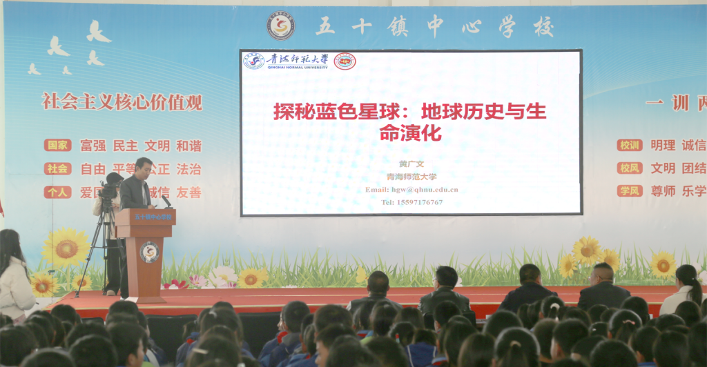 活动的核心环节是系列精彩的科普讲座。来自青海省地质调查院的高级工程师拜永山、青海师范大学的副教授黄广文、青海省地质测绘地理信息院的工程师陶延翔三位专家,分别围绕“湟水流域的远古‘居民’”、“探秘蓝色星球:地球历史与生命演化”以及“遥感,感知世界的‘超能力’”等主题进行了深入浅出的讲解。讲座过程中设置了热烈的互动问答,学生们踊跃提问,与专家们展开了积极的思维碰撞。